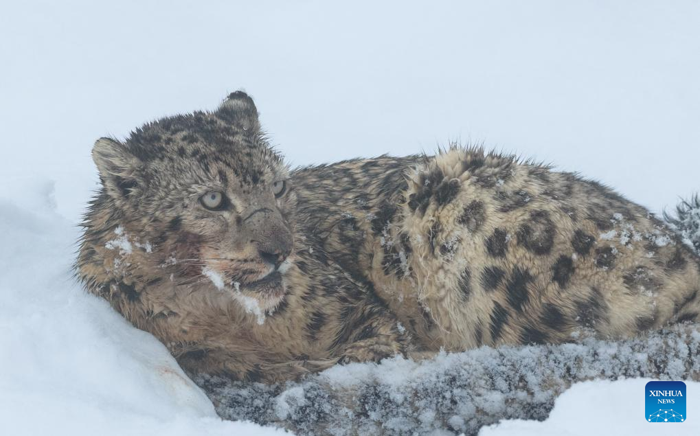 ABA, 20 abril, 2026 (Xinhua) -- Imagen del 12 de abril de 2026 de un leopardo de las nieves comiendo a su presa en el área escénica de Lianbao Yeze, en el distrito de Aba de la prefectura autónoma tibetana y qiang de Aba, en la provincia de Sichuan, en el suroeste de China. Conocido como el "rey de las montañas nevadas", el leopardo de las nieves goza de protección nacional de primer nivel en China. (Xinhua/Yongdan)