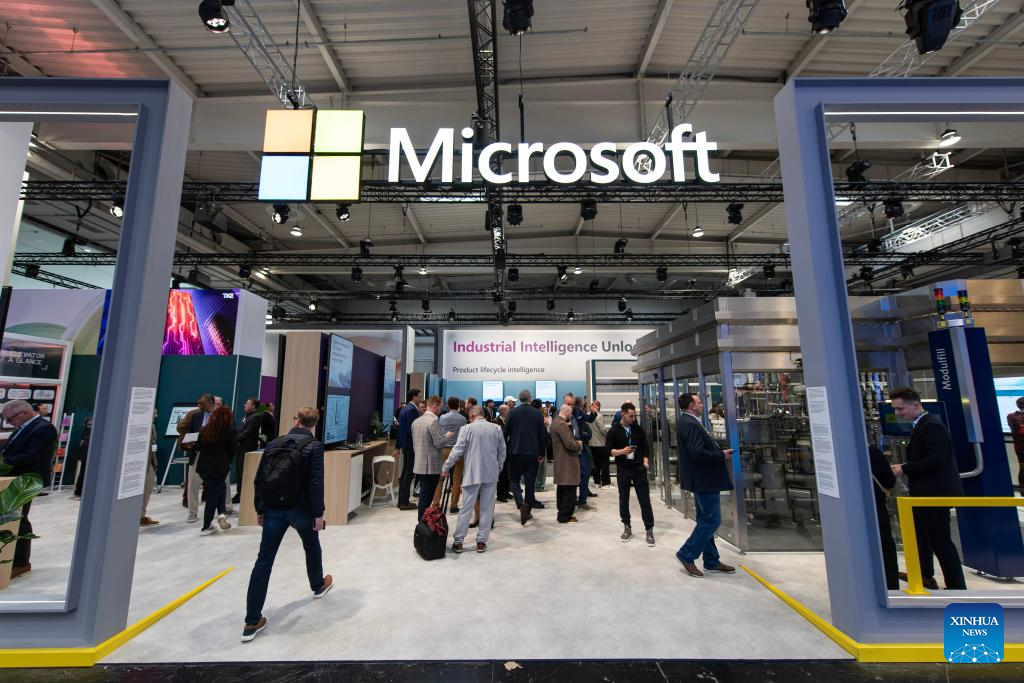 HANNOVER, 20 abril, 2026 (Xinhua) -- Personas visitan el área de exposición de Microsoft en la Hannover Messe 2026, en Hannover, Alemania, el 20 de abril de 2026. La Hannover Messe 2026, la feria industrial más importante de Alemania, abrió sus puertas el lunes con la inteligencia artificial industrial y los robots humanoides como protagonistas por primera vez. (Xinhua/Zhang Haofu)