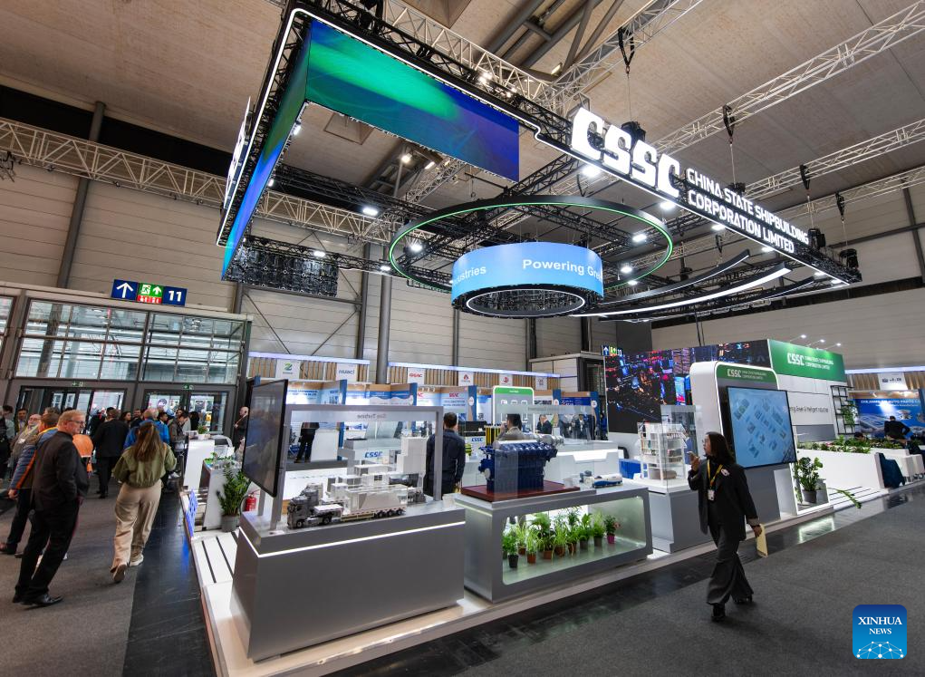 HANNOVER, 20 abril, 2026 (Xinhua) -- Imagen del 20 de abril de 2026 del área de exposición de China State Shipbuilding Corporation Limited en la Hannover Messe 2026, en Hannover, Alemania. La Hannover Messe 2026, la feria industrial más importante de Alemania, abrió sus puertas el lunes con la inteligencia artificial industrial y los robots humanoides como protagonistas por primera vez. (Xinhua/Zhang Haofu)