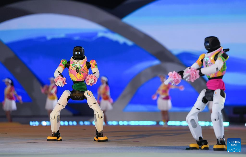 SANYA, 22 abril, 2026 (Xinhua) -- Robots realizan una presentación durante la ceremonia de apertura de los VI Juegos Asiáticos de Playa, en Sanya, en la provincia de Hainan, en el sur de China, el 22 de abril de 2026. (Xinhua/Pan Yulong)