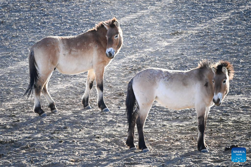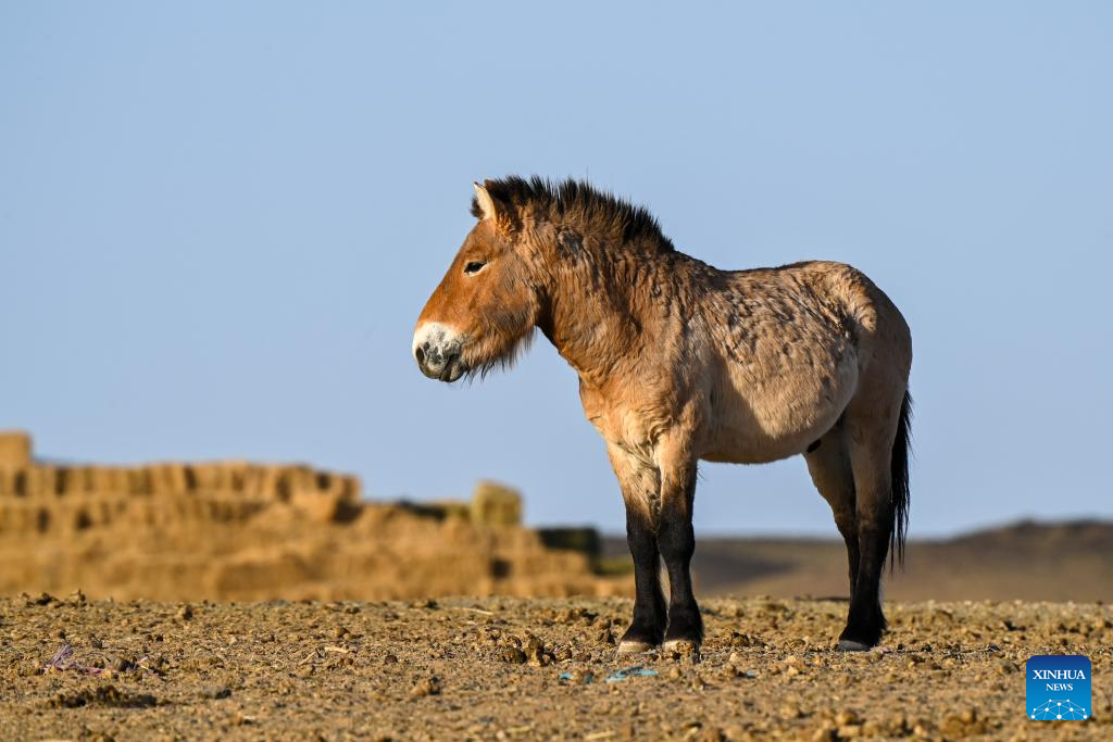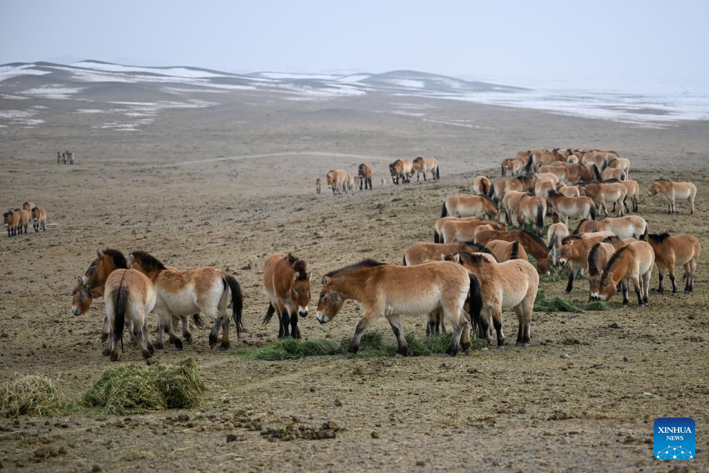 CHANGJI, 22 abril, 2026 (Xinhua) -- Imagen del 4 de febrero de 2026 de caballos de Przewalski pastando en una estación de monitoreo en la Reserva Natural de Kalamaili, en la región autónoma uygur de Xinjiang, en el noroeste de China. Un total de 30 caballos de Przewalski fueron reintroducidos con éxito en la Reserva Natural de Kalamaili el miércoles, tras completar su entrenamiento de reintroducción a la vida silvestre. (Xinhua/Ding Lei)