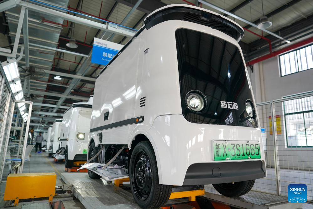 NANJING, 22 abril, 2026 (Xinhua) -- Imagen del 25 de marzo de 2026 de un vehículo autónomo siendo ajustado en la línea de producción de Neolix, un fabricante de vehículos autónomos, en Yancheng, en la provincia de Jiangsu, en el este de China. En los últimos años, Jiangsu se ha centrado en desarrollar nuevas fuerzas productivas de calidad, apostando por un desarrollo de alta gama, inteligente y globalizado, utilizando la manufactura avanzada para impulsar un crecimiento económico de alta calidad. (Xinhua/Li Bo)