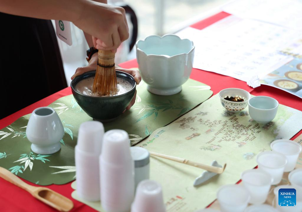 BELO HORIZONTE, 23 abril, 2026 (Xinhua) -- Imagen del 22 de abril de 2026 de un voluntario demostrando el arte del Dian Cha, un método para preparar y beber té, durante el evento de inauguración de una exposición itinerante titulada "El Sabor que Cruza Montañas y Mares: La Ruta del Té y el Viaje del Café" en la Universidad Federal de Minas Gerais, en Belo Horizonte, Brasil, el 22 de abril de 2026. Como parte de una serie de eventos celebrados durante el "Año Cultural China-Brasil", la exposición itinerante abrió sus puertas aquí el miércoles. (Xinhua/Jin Haoyuan)
