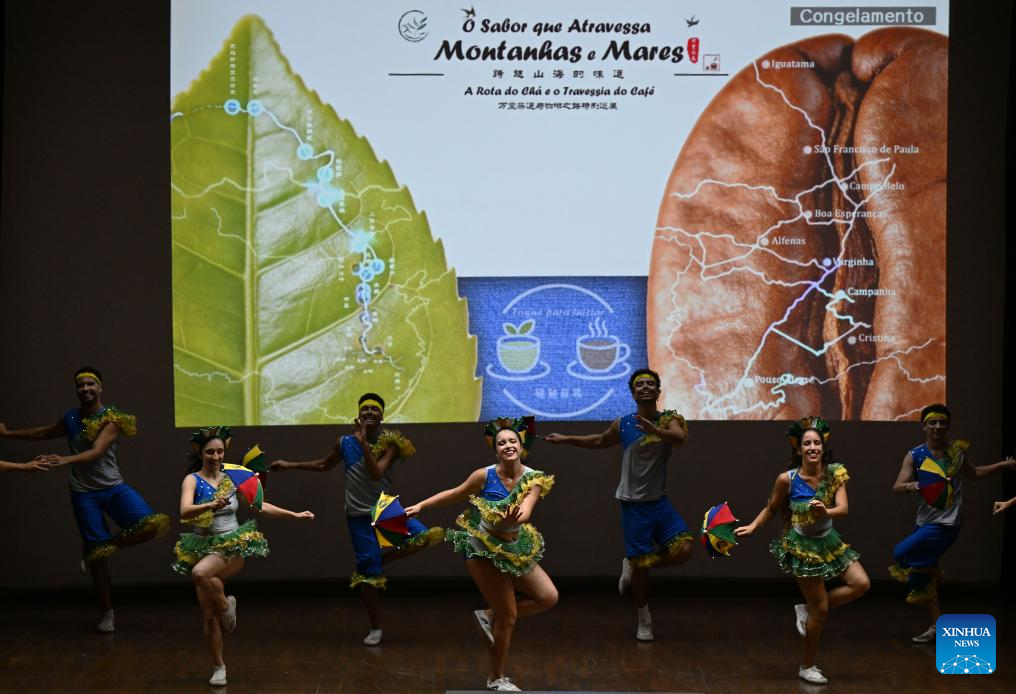BELO HORIZONTE, 23 abril, 2026 (Xinhua) -- Imagen del 22 de abril de 2026 de bailarines de samba realizando una presentación durante el evento de inauguración de una exposición itinerante titulada "El Sabor que Cruza Montañas y Mares: La Ruta del Té y el Viaje del Café" en la Universidad Federal de Minas Gerais, en Belo Horizonte, Brasil, el 22 de abril de 2026. Como parte de una serie de eventos celebrados durante el "Año Cultural China-Brasil", la exposición itinerante abrió sus puertas aquí el miércoles. (Xinhua/Jin Haoyuan)