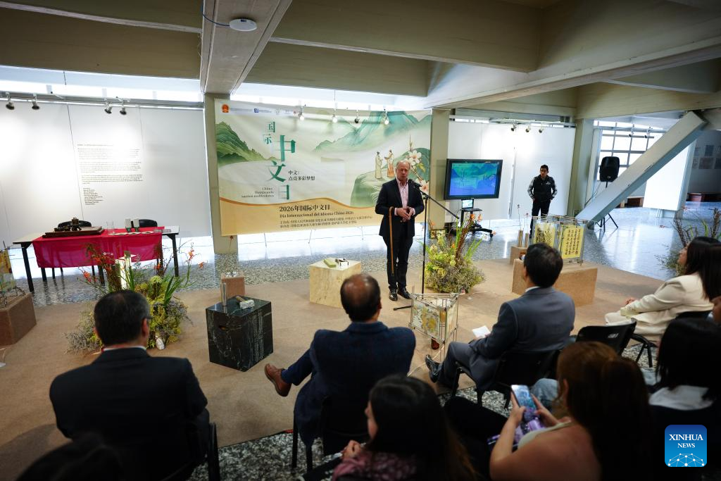 Imagen del 23 de abril de 2026 de Francisco José Lloreda, rector de la Universidad Jorge Tadeo Lozano, hablando durante la celebración del Día Internacional del Idioma Chino en la Universidad Jorge Tadeo Lozano, en Bogotá, Colombia. Estudiantes y cuerpo docente de la Universidad Jorge Tadeo Lozano de Bogotá celebraron el jueves el Día Internacional del Idioma Chino en un evento en este centro educativo que lleva 13 años enseñando mandarín. (Xinhua/Andrés Moreno)