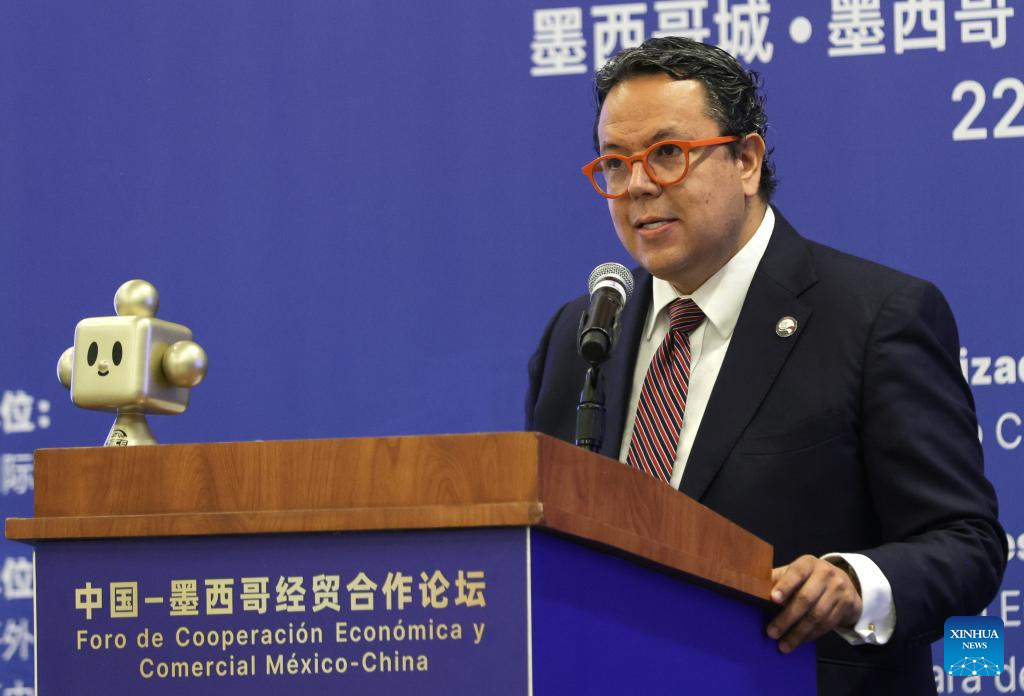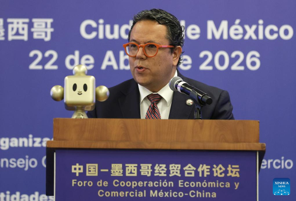 Imagen del 22 de abril de 2026 del presidente de la Cámara de Comercio y Tecnología México-China, Vicente Roqueñí, hablando durante el Foro de Cooperación Económica y Comercial México-China, en la Ciudad de México, capital de México. La relación entre México y China tiene amplias posibilidades de cooperación, particularmente en sectores como la electromovilidad y la tecnología médica, de acuerdo con Roqueñí. (Xinhua/Francisco Cañedo)