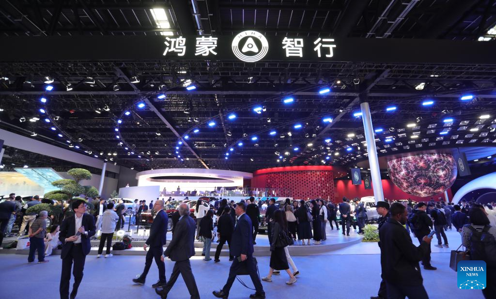 BEIJING, 24 abril, 2026 (Xinhua) -- Imagen del 24 de abril de 2026 del estand de Harmony Intelligent Mobility Alliance durante la Exposición Internacional Automotriz de Beijing 2026, en Beijing, capital de China. La exposición comenzó aquí el viernes y se extenderá hasta el 3 de mayo. (Xinhua/Chang Nengjia)
