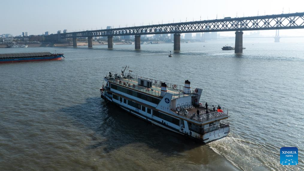 WUHAN, 25 abril, 2026 (Xinhua) -- Imagen tomada con un dron el 25 de diciembre de 2025 de turistas en un ferry a través del río Yangtse, en Wuhan, en la provincia de Hubei, en el centro de China. Actualmente, cerca de 50 puentes han sido terminados o están en construcción a lo largo del tramo de Hubei del río Yangtse. Los servicios de ferry eran el único medio de transporte para cruzar el río antes de octubre de 1957 cuando se puso en funcionamiento el puente carretero y ferroviario de Wuhan, el primero de su tipo en el río Yangtse. Ahora, lo que antes era un cruce de río que consumía mucho tiempo, se puede completar en tan solo diez minutos, lo que facilita los desplazamientos diarios de las personas y allana el camino para un desarrollo regional coordinado. (Xinhua/Xiao Yijiu)