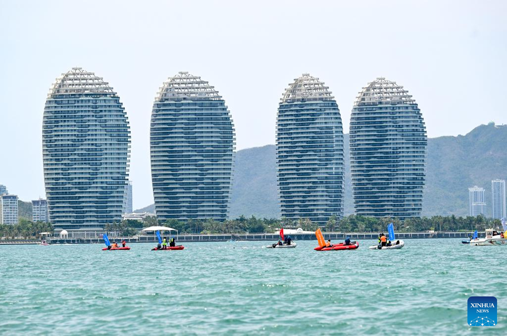 SANYA, 25 abril, 2026 (Xinhua) -- Atletas compiten durante la carrera de formula kite femenina de vela en los VI Juegos Asiáticos de Playa, en Sanya, en la provincia de Hainan, en el sur de China, el 25 de abril de 2026. (Xinhua/Zhang Fan)