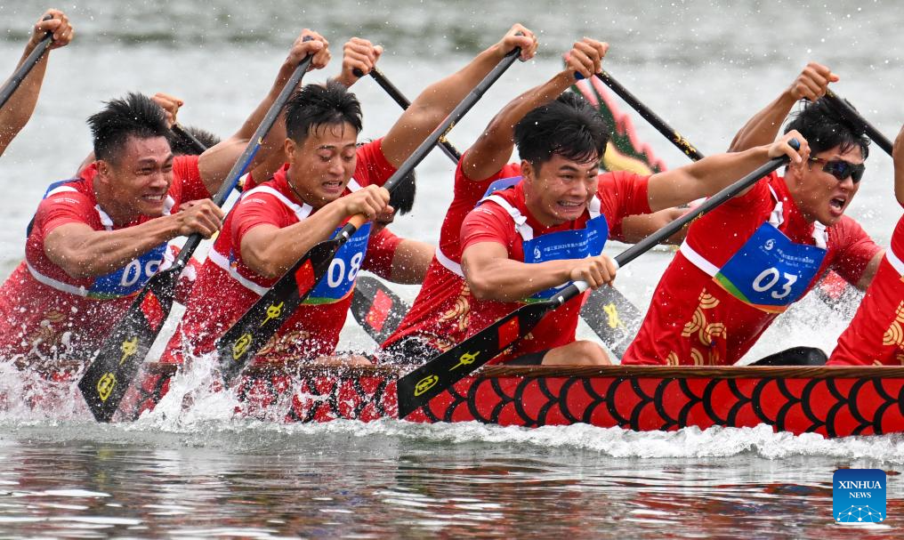 SANYA, 25 abril, 2026 (Xinhua) -- El equipo de China compite durante la gran final de la carrera de 200 m en línea recta masculina para botes pequeños del evento de botes del dragón en los VI Juegos Asiáticos de Playa, en Sanya, en la provincia de Hainan, en el sur de China, el 25 de abril de 2026. (Xinhua/Yang Guanyu)