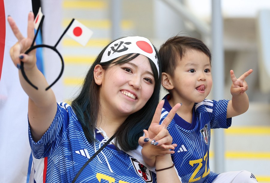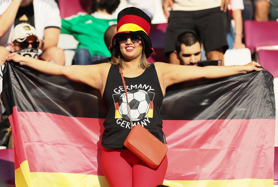 Aficionados reaccionan previo al partido del Grupo E entre Alemania y Japón en la Copa Mundial de la FIFA 2022 en el Estadio Internacional Khalifa, en Doha, Qatar, el 23 de noviembre de 2022. (Xinhua/Pan Yulong)