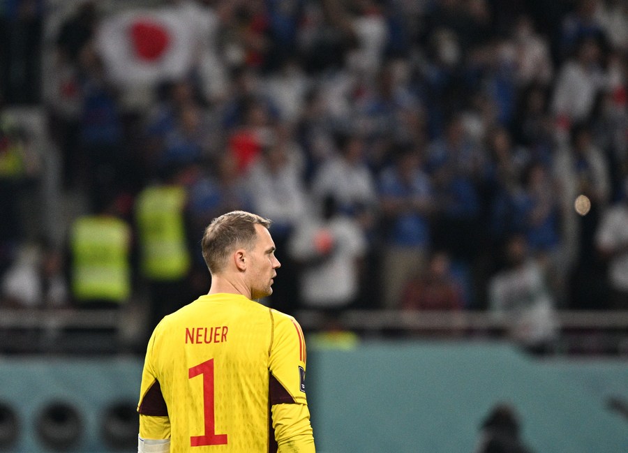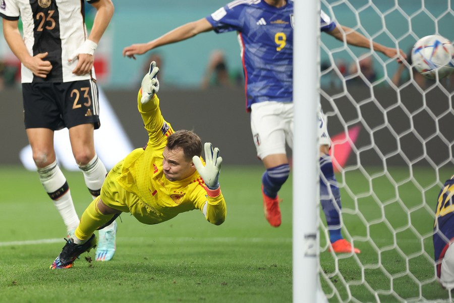 Manuel Neuer, guardameta de Alemania, no logra atajar el balón durante el partido del Grupo E entre Alemania y Japón en la Copa Mundial de la FIFA 2022 en el Estadio Internacional Khalifa, en Doha, Qatar, el 23 de noviembre de 2022. (Xinhua/Pan Yulong)