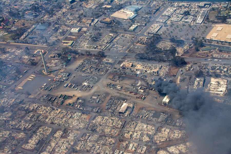 Imagen difundida por el condado de Maui del 10 de agosto de 2023 de viviendas destruidas en un devastador incendio forestal, en la isla de Maui, en Hawái, Estados Unidos. (Xinhua/Fotografías del Condado de Maui)