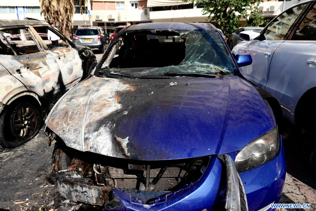 ASHDOD, 1 noviembre, 2023 (Xinhua) -- Vehículos son vistos dañados en un ataque de cohete desde Gaza el 31 de octubre, en Ashdod, Israel, el 1 de noviembre de 2023. Al menos 8.525 palestinos han muerto por ataques israelíes en Gaza desde el comienzo de la última ola del conflicto entre Israel y Hamás, que comenzó el 7 de octubre, según el Ministerio de Salud con sede en Gaza. Por su parte, el Ejército israelí dijo que, desde esa misma fecha, al menos 1.400 personas han perdido la vida en Israel. (Xinhua/Wang Zhuolun)