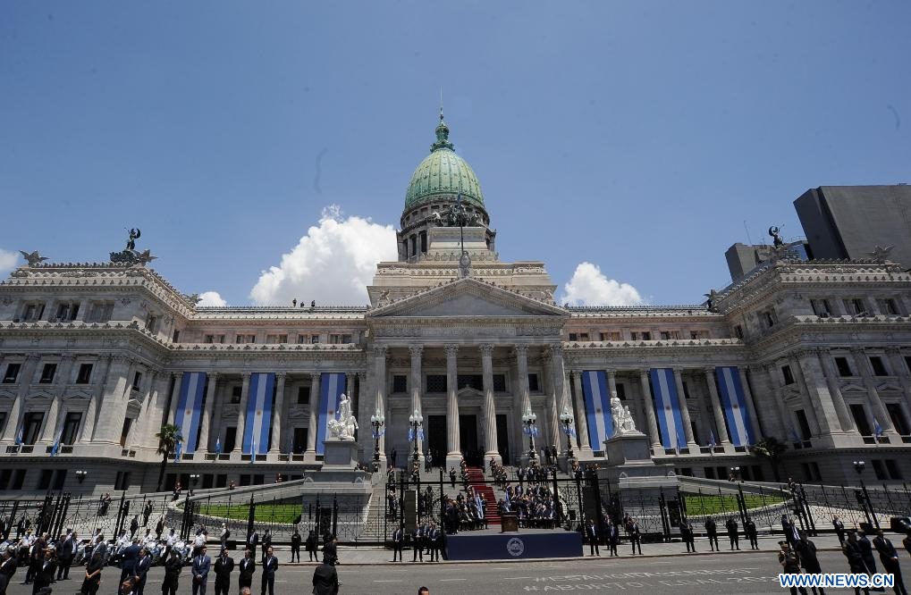 El nuevo presidente habló ante el público en las escalinatas del Congreso de la Nación, y no dentro del recinto frente a los senadores y diputados, como ha sido la tradición desde el regreso de la democracia al país sudamericano en 1983.