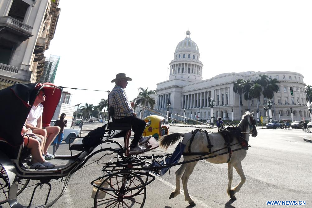 Imagen del 22 de diciembre de 2023 de un coche tirado por un caballo circulando por una calle frente al Capitolio, en La Habana, capital de Cuba. La implementación de un programa de estabilización macroeconómica en el 2024, anunciado por el Gobierno cubano, es vital para comenzar a corregir los problemas de larga data que presenta la economía de la nación, valoró el economista cubano Antonio Romero. (Xinhua/Joaquín Hernández)