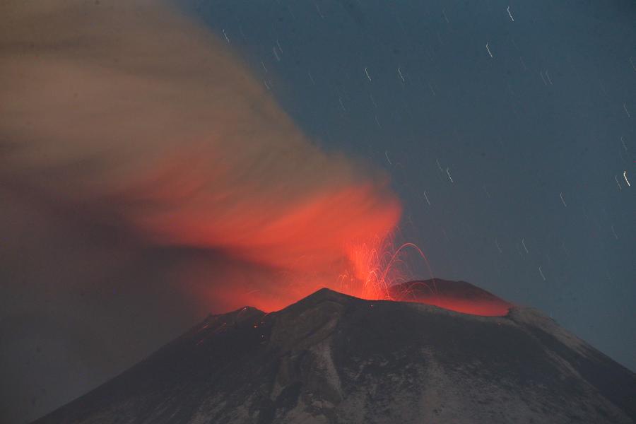 MÉXICO, 20 feb (Xinhua) -- El volcán Popocatépetl lanzó hoy una fumarola de más de dos kilómetros de altura desde el cráter, misma que se pudo ver en al menos cuatro entidades federativas mexicanas, informó la Coordinación General de Protección Civil del estado de Puebla.