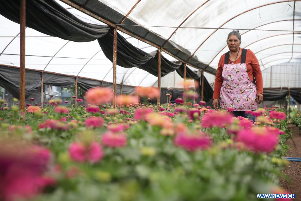 MÉXICO, 9 may (Xinhua) -- Esfuerzo, lucha y satisfacción han sido los ejes principales en la vida de la floricultora Elvia Cabello Martínez, una madre mexicana que ha logrado proporcionar estudios profesionales a sus hijos a través de trabajar la tierra en los campos de México.