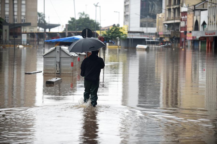 La ciudad de Porto Alegre, capital del estado, registraba este lunes nuevamente lluvias y la crecida, nuevamente, del Río Guaíba, que ha batido récord de volumen permitiendo inundar más de la mitad de la urbe.