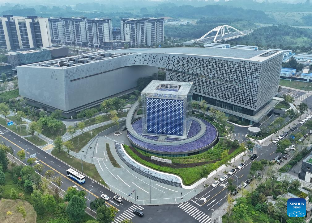 CHENGDU, 29 octubre, 2024 (Xinhua) -- Imagen aérea tomada con un dron el 16 de octubre de 2024 de una vista del Centro Nacional de Supercomputación, en la Nueva Area de Tianfu, en la provincia de Sichuan, en el suroeste de China. Hace diez años, la Nueva Area de Tianfu fue aprobada oficialmente como una nueva zona económica a nivel nacional. Priorizando la ecología y el desarrollo verde, la Nueva Area de Tianfu ha tomado la construcción de una ciudad parque. Mientras tanto, también se ha centrado en fortalecer la innovación tecnológica y la optimización del entorno empresarial. (Xinhua/Liu Kun)