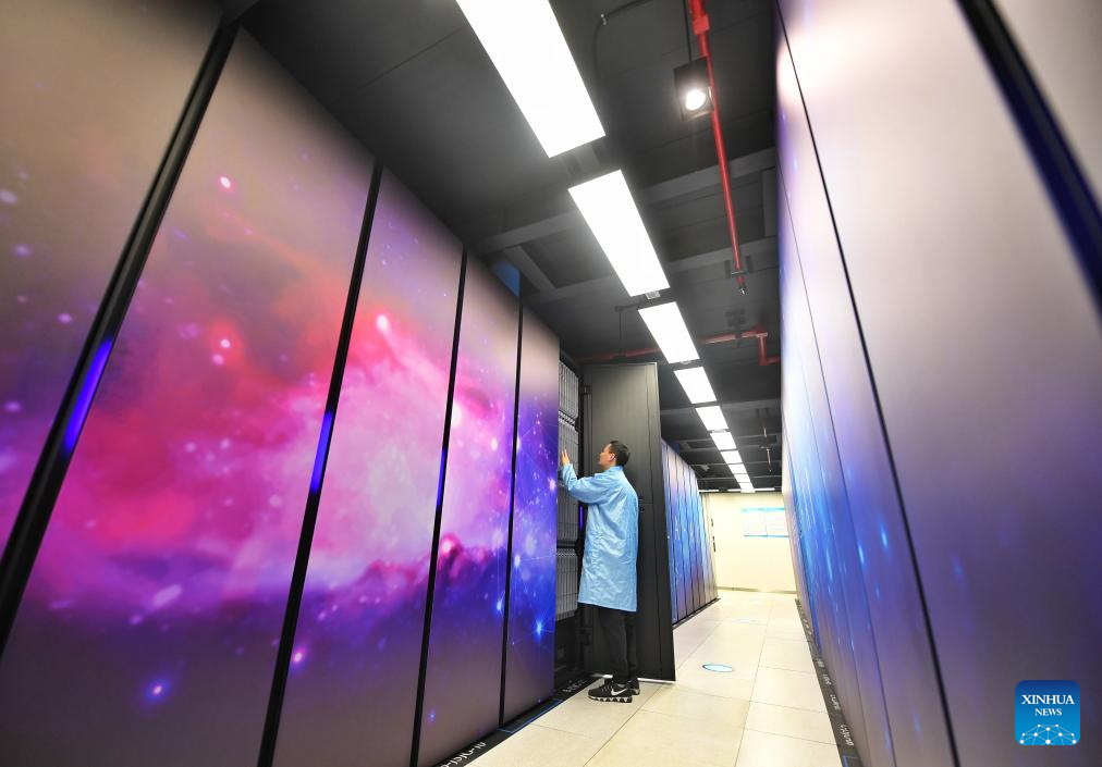 CHENGDU, 29 octubre, 2024 (Xinhua) -- Imagen del 14 de febrero de 2023 de un miembro del personal de investigación inspeccionando dispositivos en el Centro Nacional de Supercomputación, en la Nueva Area de Tianfu, en la provincia de Sichuan, en el suroeste de China. Hace diez años, la Nueva Area de Tianfu fue aprobada oficialmente como una nueva zona económica a nivel nacional. Priorizando la ecología y el desarrollo verde, la Nueva Area de Tianfu ha tomado la construcción de una ciudad parque. Mientras tanto, también se ha centrado en fortalecer la innovación tecnológica y la optimización del entorno empresarial. (Xinhua/Liu Kun)