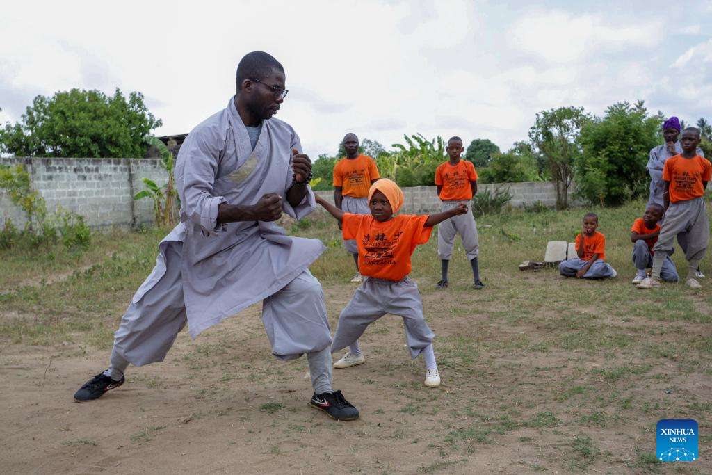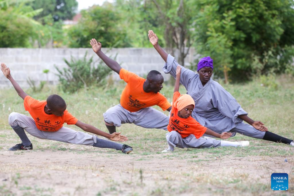 DAR ES SALAAM, 5 diciembre, 2024 (Xinhua) -- Imagen del 30 de noviembre de 2024 de Mariam Saidi Mfaume (2-d), una niña tanzana de cinco años de edad, practicando kung fu chino con otros jóvenes tanzanos en el Club de Kung Fu del Templo Shaolin de Tanzania, en Dar es Salaam, Tanzania. El Club de Kung Fu del Templo Shaolin de Tanzania ha sido invitado a participar en el Torneo de Kung Fu de la Comunidad de Desarrollo de Africa Austral (SADC, por sus siglas en inglés), programado del 14 al 15 de diciembre en Lusaka, la capital de Zambia. El torneo de kung fu, que contará con la participación de los 16 estados miembros de la SADC, una organización intergubernamental para mejorar la cooperación e integración socioeconómica regional, tiene como objetivo promover las artes marciales chinas en la región. (Xinhua/Emmanuel Herman)