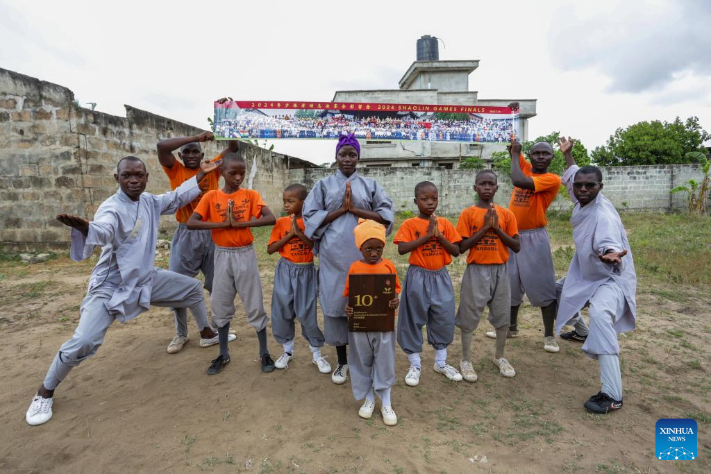 DAR ES SALAAM, 5 diciembre, 2024 (Xinhua) -- Imagen del 30 de noviembre de 2024 de Mariam Saidi Mfaume (c-frente), una niña tanzana de cinco años de edad, posando para fotografías después de practicar kung fu chino en el Club de Kung Fu del Templo Shaolin de Tanzania, en Dar es Salaam, Tanzania. El Club de Kung Fu del Templo Shaolin de Tanzania ha sido invitado a participar en el Torneo de Kung Fu de la Comunidad de Desarrollo de Africa Austral (SADC, por sus siglas en inglés), programado del 14 al 15 de diciembre en Lusaka, la capital de Zambia. El torneo de kung fu, que contará con la participación de los 16 estados miembros de la SADC, una organización intergubernamental para mejorar la cooperación e integración socioeconómica regional, tiene como objetivo promover las artes marciales chinas en la región. (Xinhua/Emmanuel Herman)