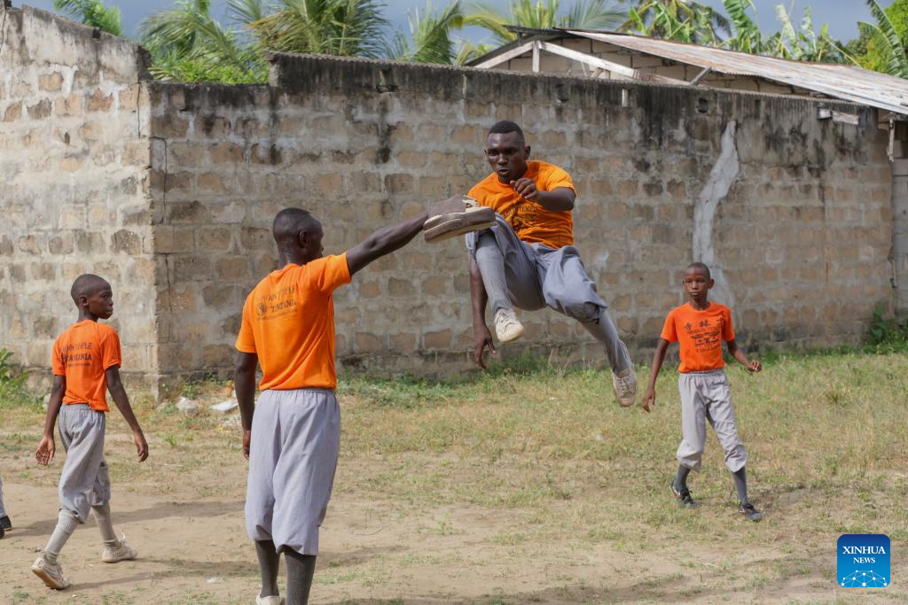 DAR ES SALAAM, 5 diciembre, 2024 (Xinhua) -- Imagen del 30 de noviembre de 2024 de jóvenes tanzanos practicando kung fu chino en el Club de Kung Fu del Templo Shaolin de Tanzania, en Dar es Salaam, Tanzania. El Club de Kung Fu del Templo Shaolin de Tanzania ha sido invitado a participar en el Torneo de Kung Fu de la Comunidad de Desarrollo de Africa Austral (SADC, por sus siglas en inglés), programado del 14 al 15 de diciembre en Lusaka, la capital de Zambia. El torneo de kung fu, que contará con la participación de los 16 estados miembros de la SADC, una organización intergubernamental para mejorar la cooperación e integración socioeconómica regional, tiene como objetivo promover las artes marciales chinas en la región. (Xinhua/Emmanuel Herman)
