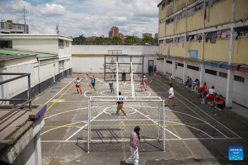 BOGOTA, 19 febrero, 2025 (Xinhua) -- Imagen del 18 de febrero de 2025 de reclusas jugando baloncesto en un patio, en la cárcel de mujeres El Buen Pastor, en Bogotá, Colombia. La Ministra de Justicia de Colombia, Angela María Buitrago, lideró el martes en la cárcel de mujeres "El Buen Pastor", en Bogotá, el evento "Bienvenidas a la Libertad", una feria de servicios articulada con el sector empresarial que pretende generar oportunidades de resocialización a quienes pronto recuperarán su libertad (Xinhua/Andrés Moreno)