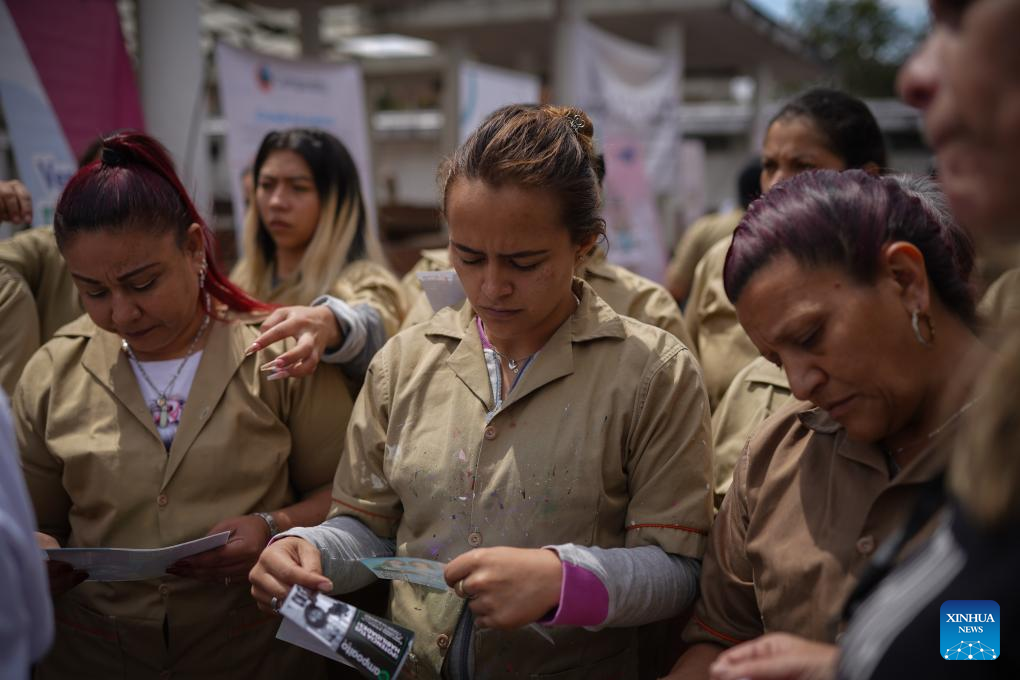 Imagen del 18 de febrero de 2025 de reclusas asistiendo al evento "Bienvenidas a la Libertad", en la cárcel de mujeres El Buen Pastor, en Bogotá, Colombia. La Ministra de Justicia de Colombia, Angela María Buitrago, lideró el martes en la cárcel de mujeres "El Buen Pastor", en Bogotá, el evento "Bienvenidas a la Libertad", una feria de servicios articulada con el sector empresarial que pretende generar oportunidades de resocialización a quienes pronto recuperarán su libertad (Xinhua/Andrés Moreno)