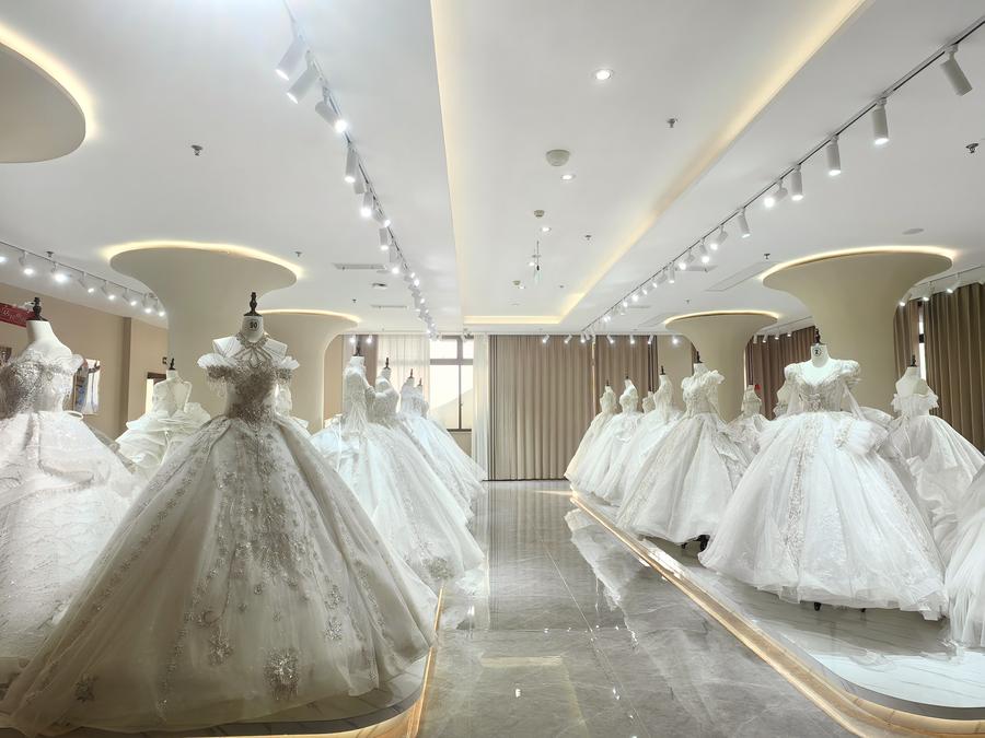 El poblado ha integrado la producción y la comercialización de vestidos de novia, la cultura nupcial, la fotografía de bodas y los espectáculos de pasarela para impulsar la ampliación y la mejora de toda la cadena industrial del sector.