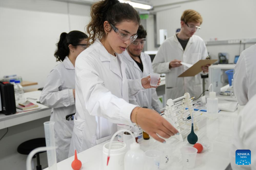 Imagen del 24 de abril de 2025 de estudiantes de química participando en una clase en el Laboratorio Conjunto entre Uruguay y China de bio-nano-farma de la Facultad de Química de la Universidad de la República, en Montevideo, capital de Uruguay. Científicos uruguayos y chinos llevan a cabo varios proyectos de investigación conjuntos en el campo interdisciplinario de la bio-nano-farma, en la búsqueda de avances en tratamientos contra el cáncer pancreático y las heridas causadas por la diabetes. (Xinhua/Nicolás Celaya)