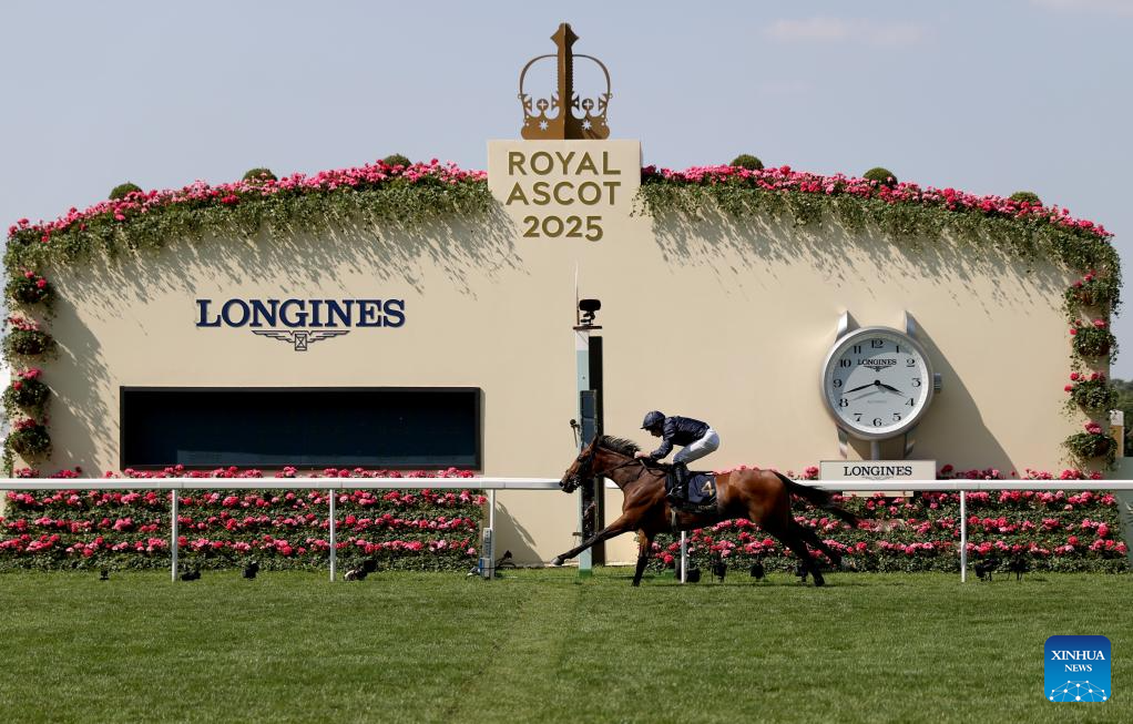 ASCOT, 20 junio , 2025 (Xinhua) -- Imagen del 19 de junio de 2025 de un jinete compitiendo sobre su caballo durante el Royal Ascot 2025 en el hipódromo de Ascot, en Ascot, Reino Unido. El Royal Ascot 2025, comenzó aquí el martes y durará hasta el sábado. (Xinhua/Li Ying)