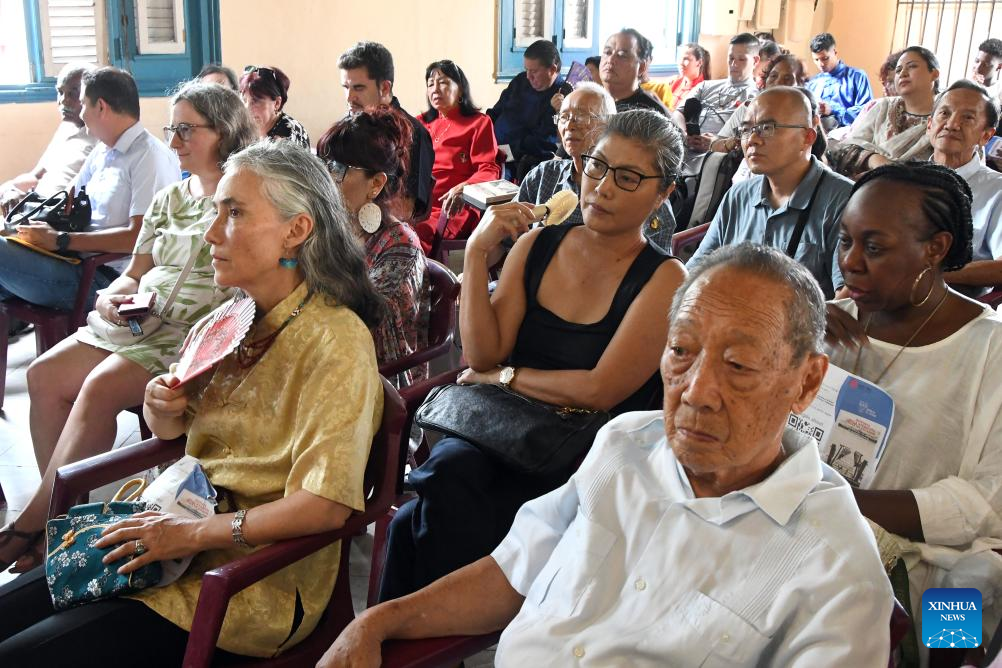 Imagen del 23 de julio de 2025 de personas participando en la presentación del libro "Historia de la migración china en Ecuador: entre la diáspora y el desarrollo de la Franja y la Ruta", en la Casa de las Artes y Tradiciones chinas, en La Habana, capital de Cuba. Cuba y Ecuador exploraron la trayectoria de sus comunidades chinas con la presentación en La Habana del libro "Historia de la migración china en Ecuador: entre la diáspora y el desarrollo de la Franja y la Ruta". (Xinhua/Joaquín Hernández)