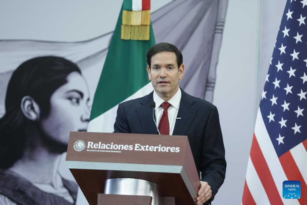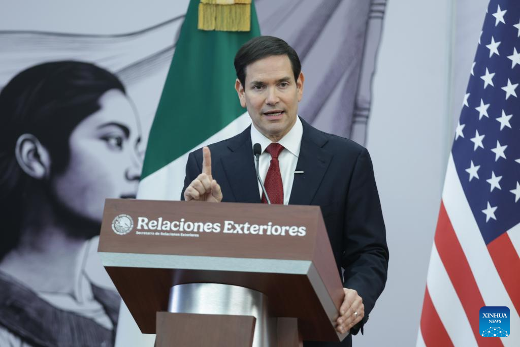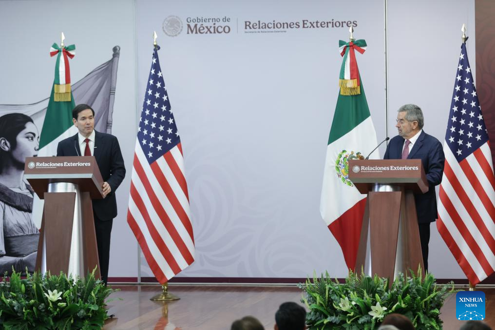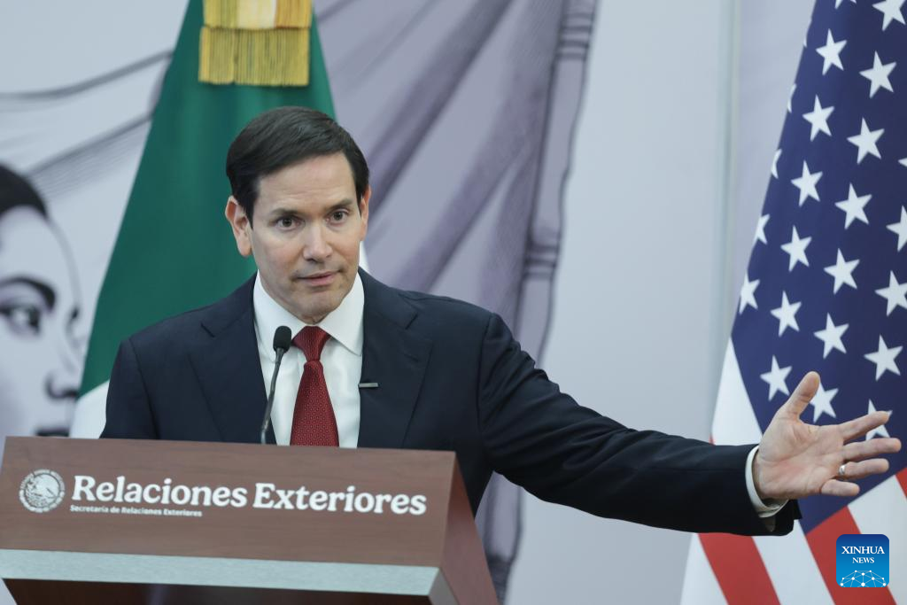 CIUDAD DE MEXICO, 3 septiembre, 2025 (Xinhua) -- El secretario de Estado estadounidense, Marco Rubio, habla durante una conferencia de prensa conjunta con el canciller mexicano, Juan Ramón de la Fuente, en la Ciudad de México, capital de México, el 3 de septiembre de 2025. México y Estados Unidos reafirmaron el miércoles su compromiso de fortalecer la cooperación en materia de seguridad, bajo los principios de reciprocidad, respeto a la soberanía, integridad territorial, responsabilidad compartida y confianza mutua, informaron ambos gobiernos en un comunicado conjunto. (Xinhua/Francisco Cañedo)