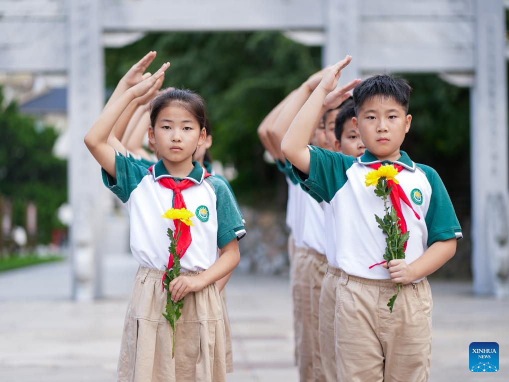 BEIJING, 30 septiembre, 2025 (Xinhua) -- Niños asisten a un evento conmemorativo en un cementerio para mártires, en Rongcheng, en la provincia de Shandong, en el este de China, el 30 de septiembre de 2025. China celebró el martes su 12 Día de los Mártires con conmemoraciones realizadas en todo el país para honrar a los héroes nacionales caídos. (Xinhua/Li Xinjun)