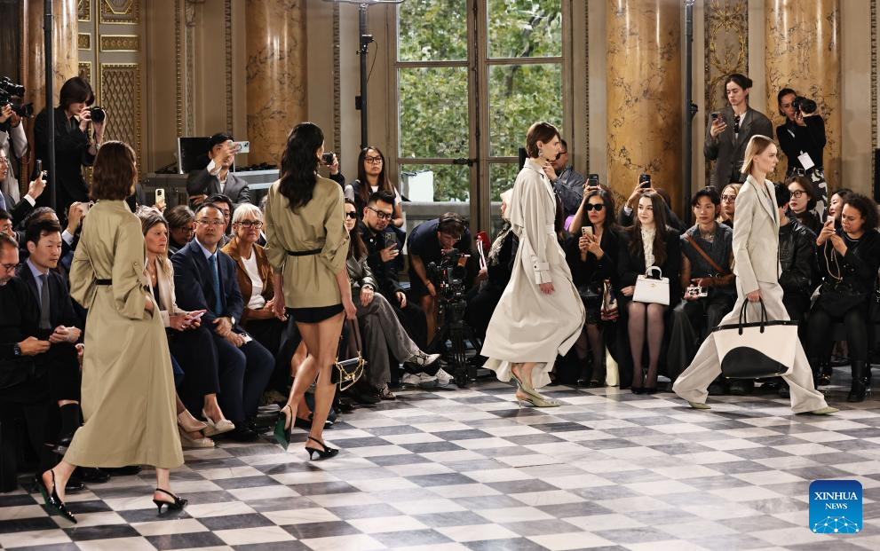 PARIS, 30 septiembre, 2025 (Xinhua) -- Imagen del 29 de septiembre de 2025 de modelos presentando creaciones de las colecciones primavera/verano 2026 de NEXY.CO en el evento del Día de la Moda de Shenzhen Futian en París llevado a cabo durante la semana de la moda de París, en París, Francia. (Xinhua/Gao Jing)