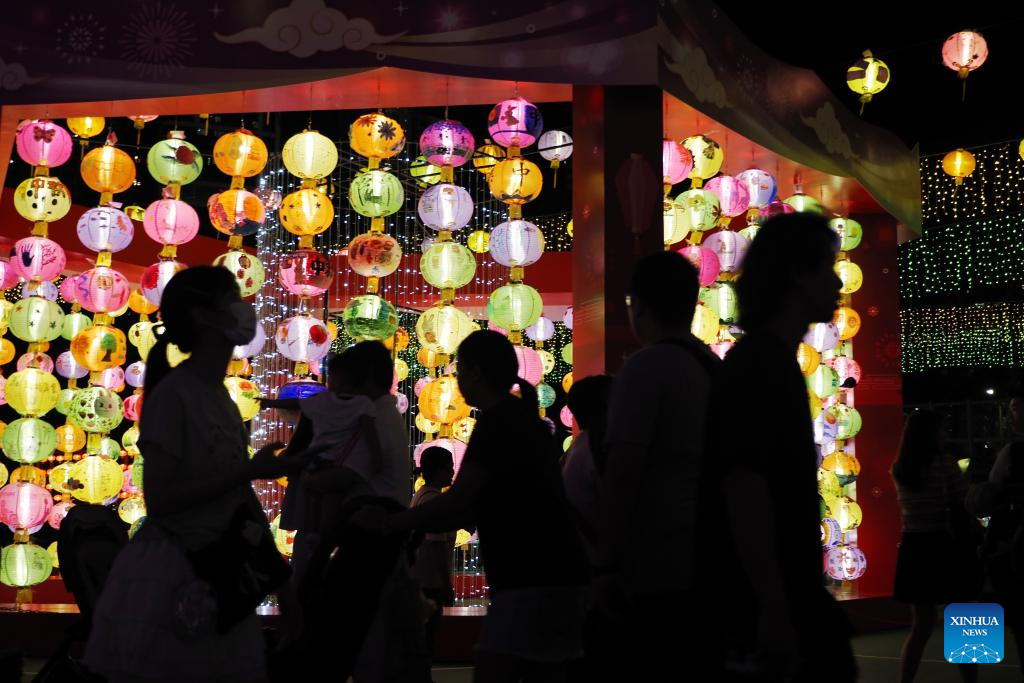 HONG KONG, 30 septiembre, 2025 (Xinhua) -- Personas visitan una feria de linternas que marca la llegada del Festival de Medio Otoño y el Día Nacional en el Parque Victoria, en Hong Kong, en el sur de China, el 30 de septiembre de 2025. (Xinhua/Wang Shen)