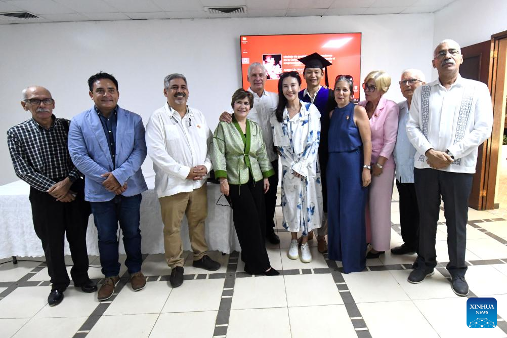 LA HABANA, 3 oct (Xinhua) -- El artista Huo Yaofei se convirtió este viernes en el primer ciudadano chino en alcanzar el grado de Doctor en Ciencias en una universidad de Cuba, al defender con éxito una investigación sobre el intercambio cultural entre ambas naciones.