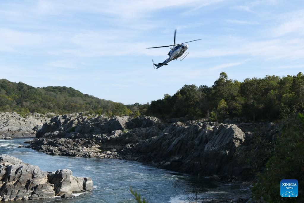 Imagen del 3 de octubre de 2025 de un helicóptero de la Policía de Parques de Estados Unidos sobrevolando el Parque Great Falls que permanece cerrado debido al cierre del Gobierno, en el condado de Fairfax, Virginia, Estados Unidos. Senadores demócratas de Estados Unidos bloquearon el viernes una iniciativa republicana para financiar temporalmente al Gobierno, lo que significa que es probable que el cierre del Gobierno se prolongue durante el fin de semana. (Xinhua/Li Rui)