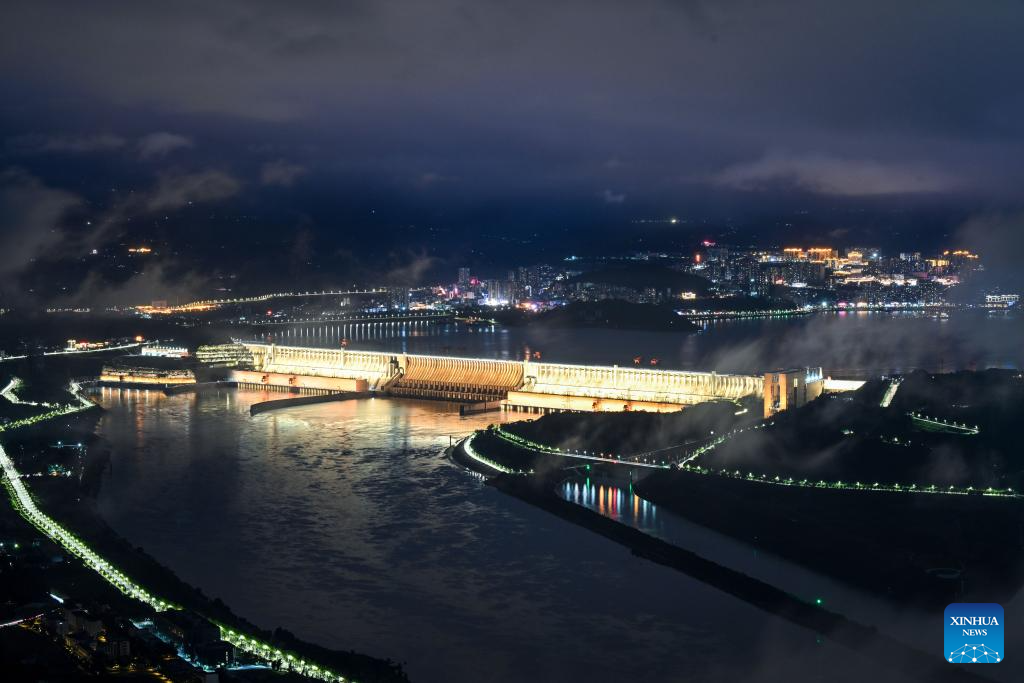 YICHANG, 4 octubre, 2025 (Xinhua) -- Vista aérea tomada con un dron el 3 de octubre de 2025 de la presa de las Tres Gargantas, en Yichang de la provincia de Hubei, en el centro de China. (Xinhua/Chen Yehua)