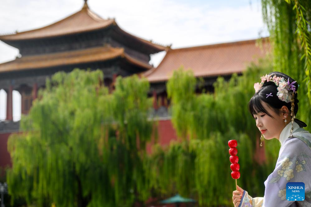 BEIJING, 4 octubre, 2025 (Xinhua) -- Imagen del 2 de octubre de 2025 de una niña portando un traje tradicional en el Museo del Palacio, en Beijing, capital de China. Este año se celebra el centenario de la fundación del Museo del Palacio de China, también conocido como la Ciudad Prohibida. (Xinhua/Jin Liangkuai)