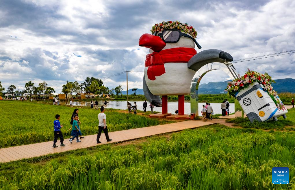 BEIJING, 4 octubre, 2025 (Xinhua) -- Imagen tomada con un dron el 4 de octubre de 2025 de turistas a orillas del lago Dianchi, en Kunming, en la provincia de Yunnan, en el suroeste de China. Los destinos turísticos de toda China están experimentando un aumento en el número de visitantes desde el miércoles con el comienzo de las vacaciones de ocho días por el Día Nacional y el Festival de Medio Otoño. (Xinhua/Chen Xinbo)