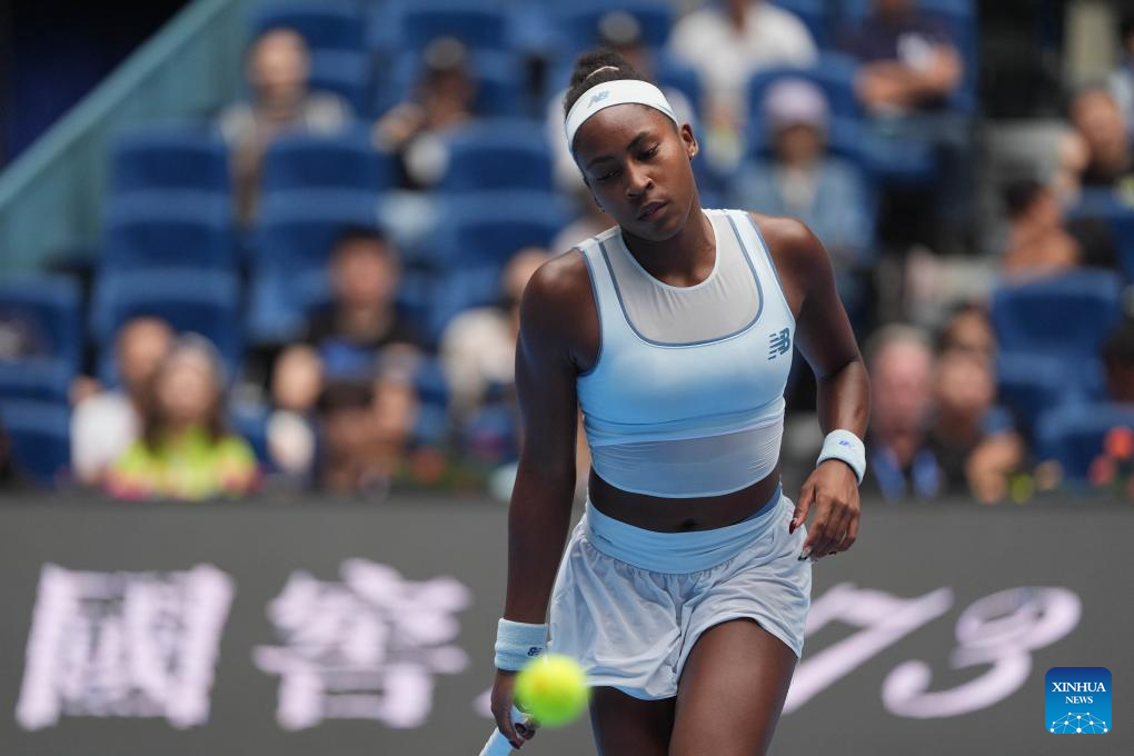 BEIJING, 4 octubre, 2025 (Xinhua) -- Coco Gauff devuelve la pelota durante el partido de semifinal de individuales femeninos entre Coco Gauff, de Estados Unidos, y Amanda Anisimova, de Estados Unidos, en el torneo de tenis China Open 2025, en Beijing, China, el 4 de octubre de 2025. (Xinhua/Xie Han)