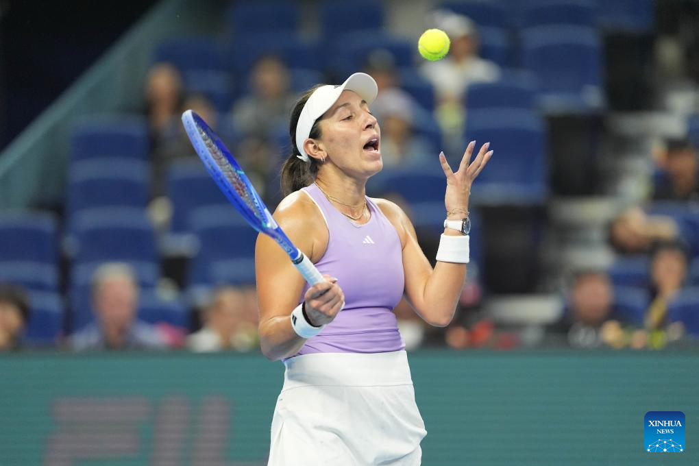 BEIJING, 4 octubre de 2025 (Xinhua) -- Jessica Pegula devuelve la pelota durante el partido de semifinales de individuales femeninos entre Linda Noskova, de la República Checa, y Jessica Pegula, de Estados Unidos, en el torneo de tenis China Open 2025, en Beijing, China, el 4 de octubre de 2025. (Xinhua/Na Yuqi)