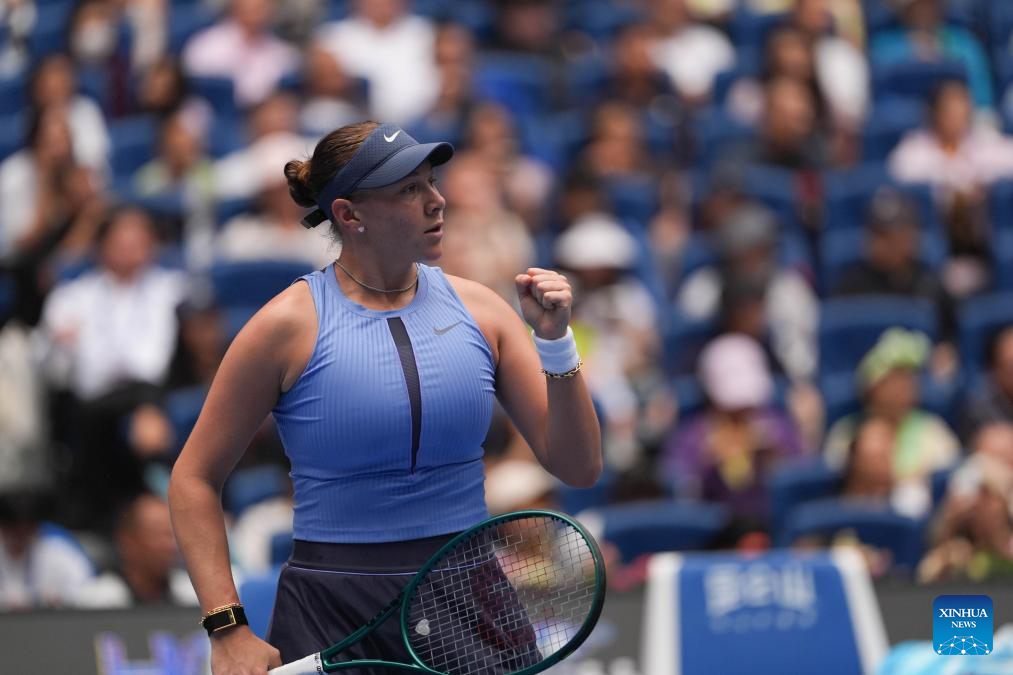 BEIJING, 4 octubre, 2025 (Xinhua) -- Amanda Anisimova festeja un punto durante el partido de semifinal de individuales femeninos entre Coco Gauff, de Estados Unidos, y Amanda Anisimova, de Estados Unidos, en el torneo de tenis China Open 2025, en Beijing, China, el 4 de octubre de 2025. (Xinhua/Xie Han)