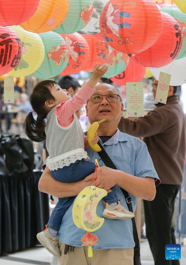 RICHMOND, 5 octubre, 2025 (Xinhua) -- Imagen del 4 de octubre de 2025 de personas participando en juegos de acertijos durante la celebración del Festival del Medio Otoño en un centro comercial, en Richmond, Columbia Británica, Canadá. (Xinhua/Liang Sen)
