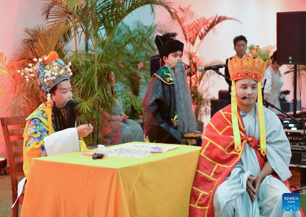 Imagen del 5 de octubre de 2025 de personas realizando una presentación artística durante la celebración del Festival de Medio Otoño, en Managua, Nicaragua. En un ambiente festivo cargado de simbolismo y hermandad, la comunidad china residente en Nicaragua celebró el domingo en Managua el tradicional Festival de Medio Otoño, una de las festividades más emblemáticas de la cultura china. (Xinhua/Noelia Aráuz)