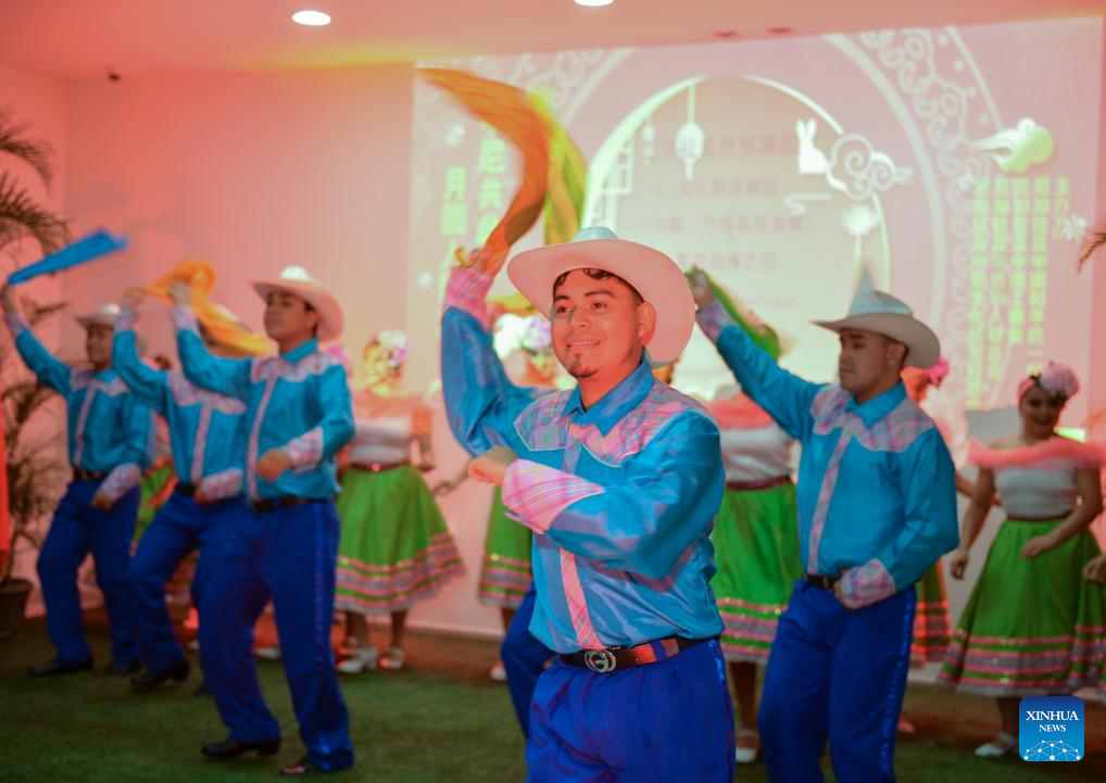MANAGUA, 6 oct (Xinhua) -- En un ambiente festivo cargado de simbolismo y hermandad, la comunidad china residente en Nicaragua celebró el domingo en Managua el tradicional Festival de Medio Otoño, una de las festividades más emblemáticas de la cultura china.