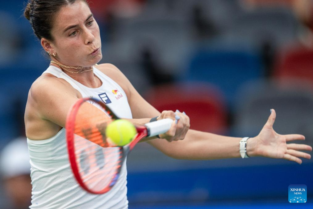 WUHAN, 7 octubre, 2025 (Xinhua) -- Marie Bouzkova, de República Checa, devuelve la pelota durante el partido de dieciseisavos de final de individuales femeninos ante Iga Swiatek, de Polonia, en el torneo de tenis Wuhan Open 2025, en Wuhan, en la provincia de Hubei, en el centro de China, el 7 de octubre de 2025. (Xinhua/Xiao Yijiu)